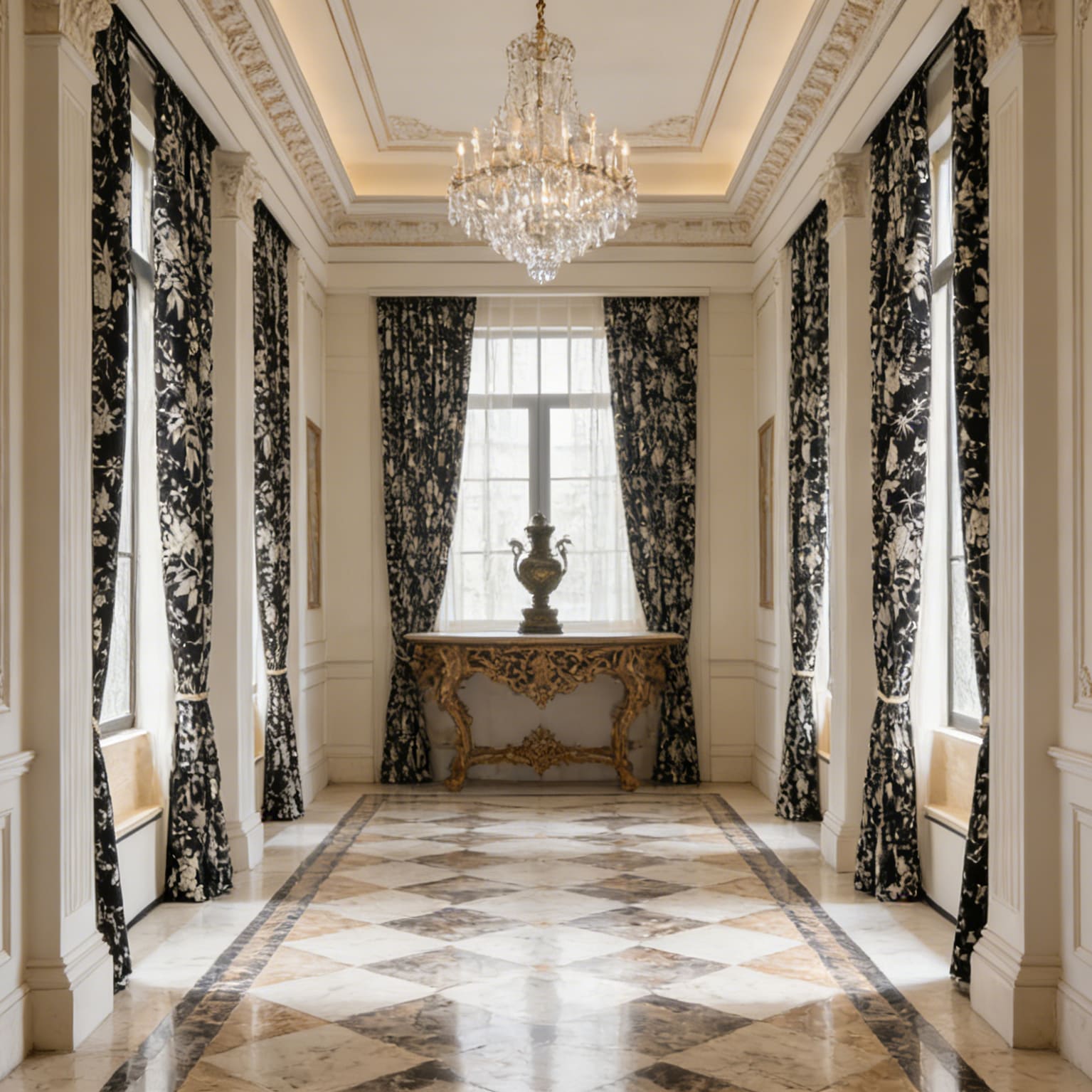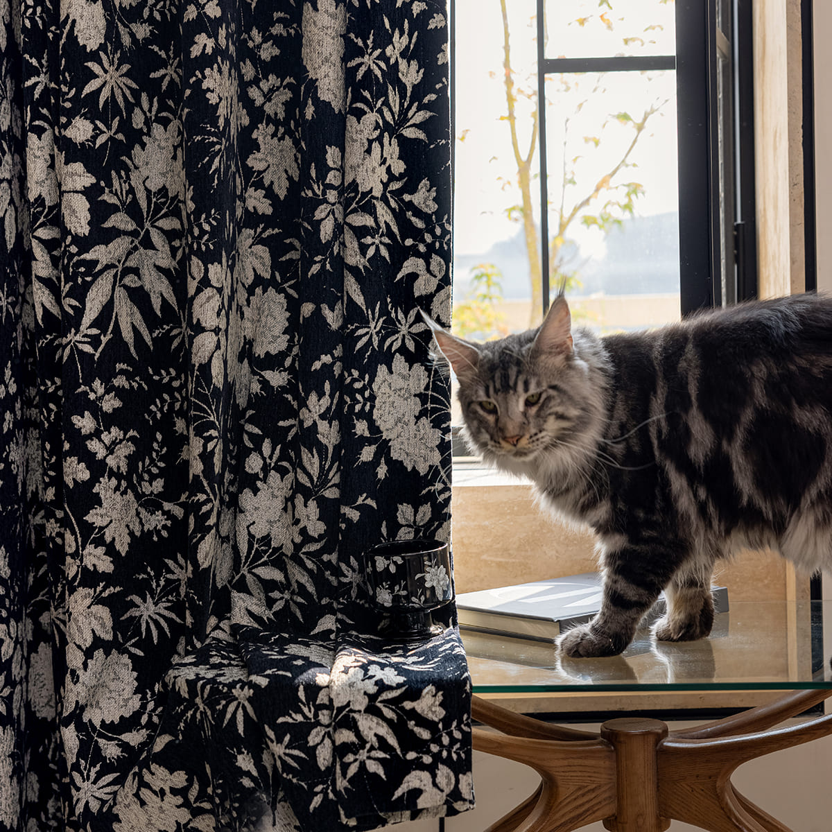 Design Style: The curtain embodies a classic and elegant design style, perfect for creating a refined and sophisticated ambiance. The floral pattern and color palette make it ideal for spaces that aim to combine beauty with simplicity. The design evokes a sense of classic cinematic elegance, with an old-world charm and film filter effect that adds depth and character to any room.