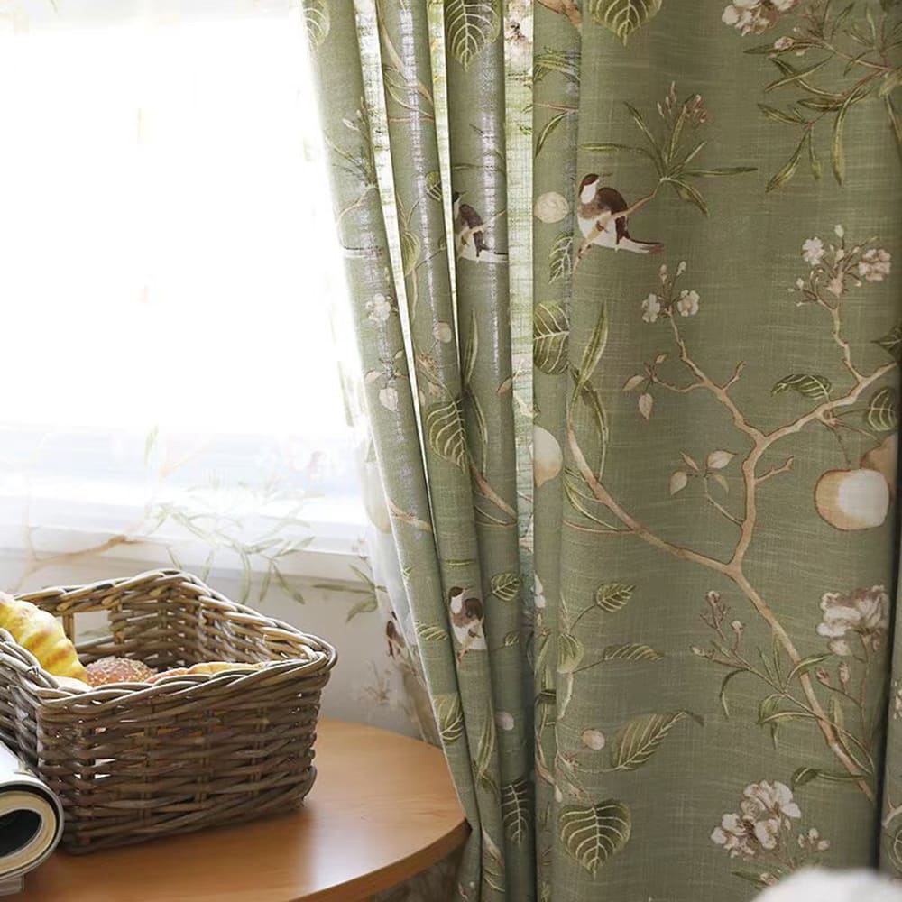• CURTAIN FABRIC: Birds / peach. Crafted of flax & polyester, these kale green curtains are thick and heavy, offering you a good touch and a sumptuous drape, environment-friendly and no chemical coating. With charming tones and hues they easily blend into any style setting to add colors and textures to your room and make your space look more sophisticated and elegant.