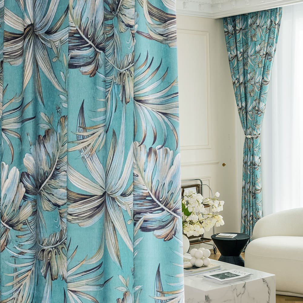 - OCCASIONS: These blue banana leaves curtains and drapes for windows add a distinctive and bold touch of color to your room - bedroom, living room, sitting room, dining room, lounge, kitchen, infant room, basement, nursery, kids, girls and more.These orange curtains will immediately transform your room into a classic and fresh new style.