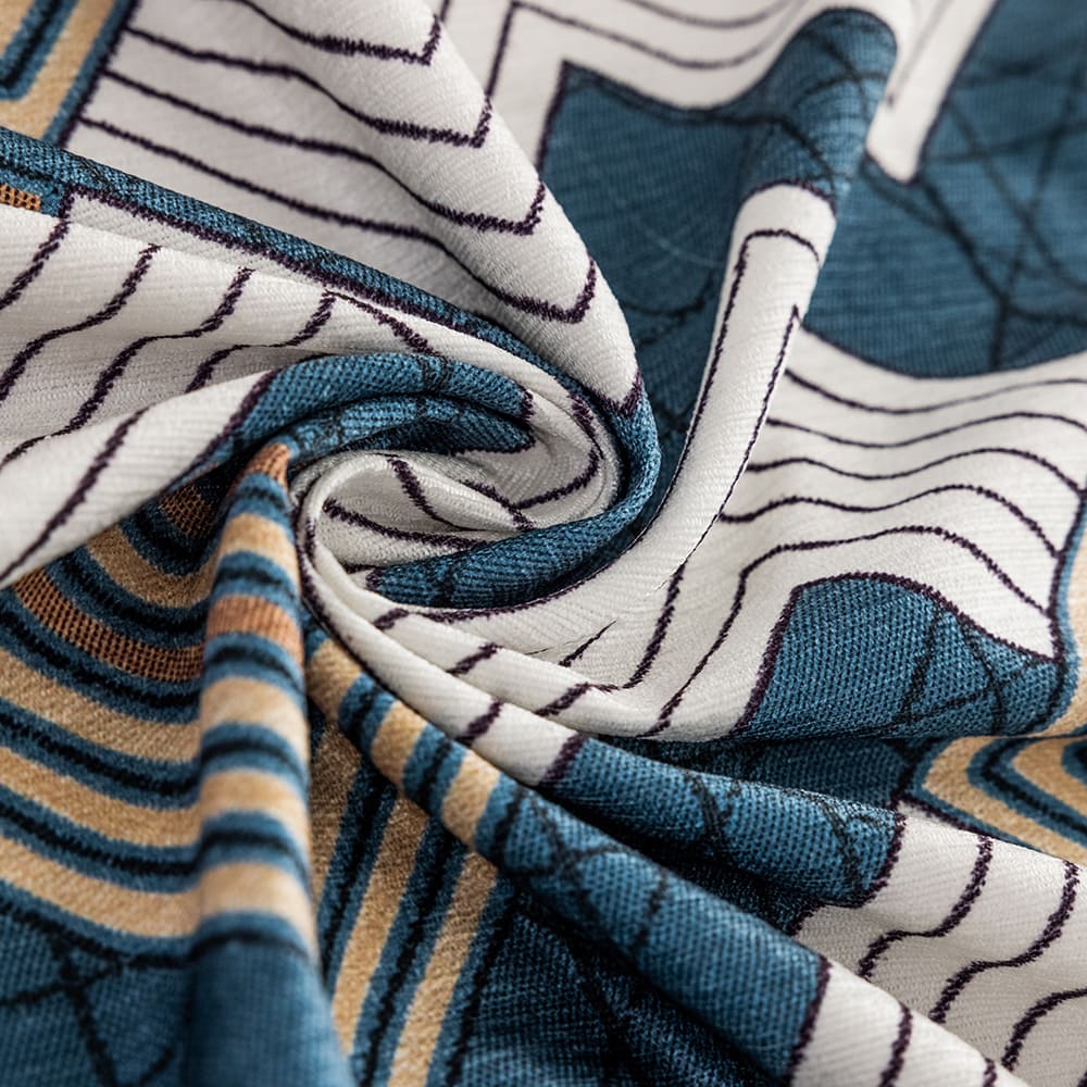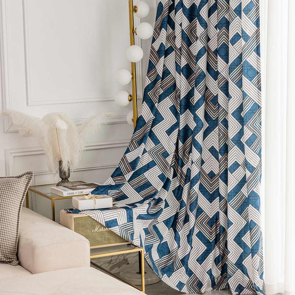 - CURTAIN FABRIC: Blue Geometric Pattern curtains are soft and heavy, offering you a softly touch and a sumptuous drape, environment-friendly and no chemical coating. With charming tones and hues they easily blend into any style setting to make your rooms look more sophisticated and elegant.