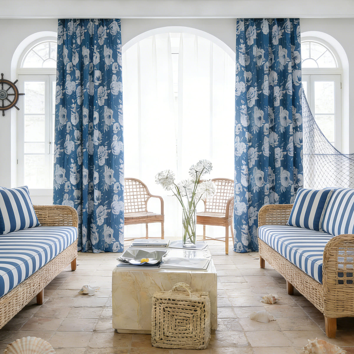- Lighting Matters: The blue peony print looks different in natural vs. artificial light—test your curtains in both to see how they glow!
