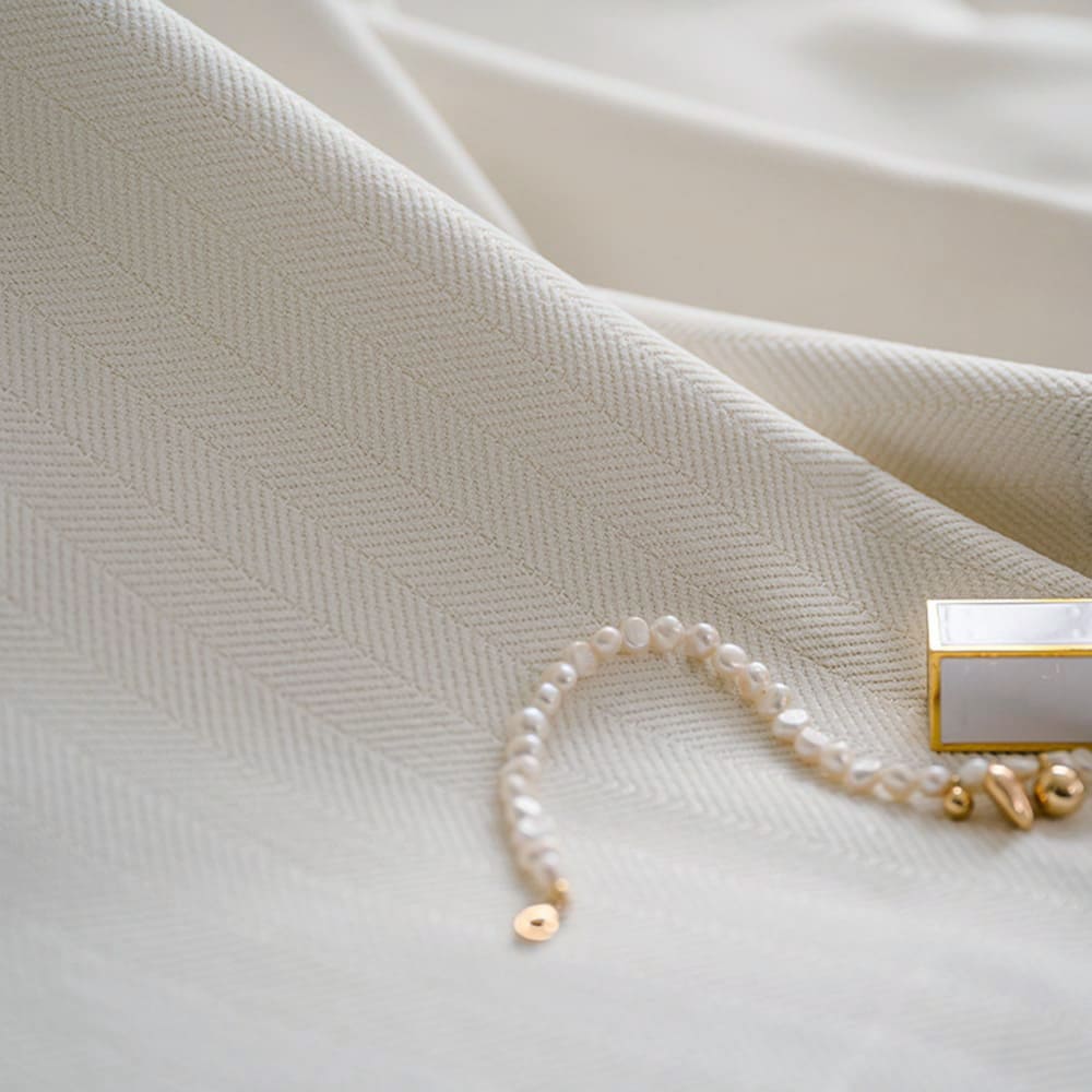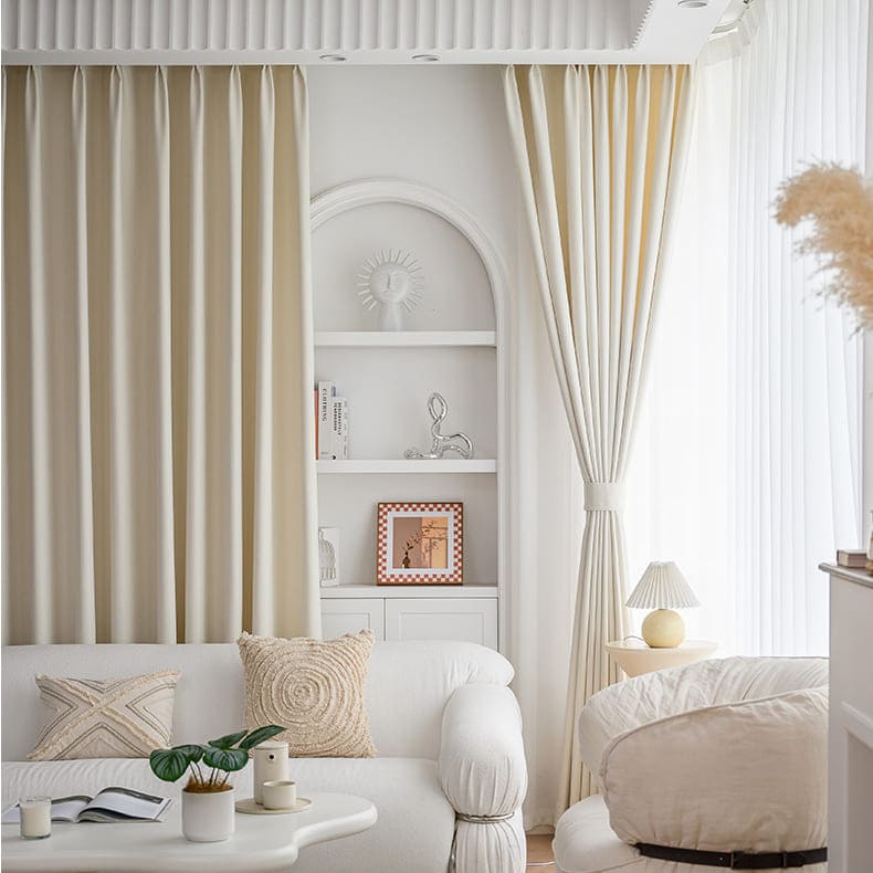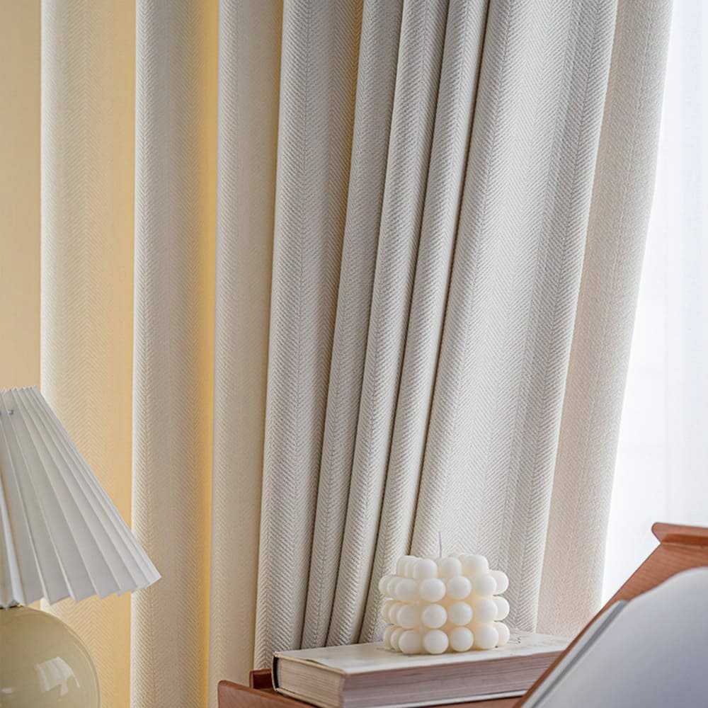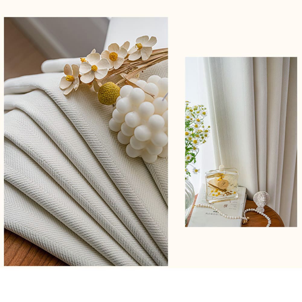 - CURTAIN FABRIC: Cream White Chenille Polyline Jacquard curtains are soft and heavy, offering you a silky touch and a sumptuous drape, environment-friendly and no chemical coating. With charming tones and hues they easily blend into any style setting to make your rooms look more sophisticated and elegant.