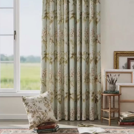 Pattern & Design: The delicate watercolor-style print captures the graceful form of chestnut catkins and blossoms, with loose, painterly brushstrokes that give each bloom an organic, handcrafted feel. The design is light and uncluttered, letting the natural beauty of the chestnut flowers take center stage without overwhelming the space.
