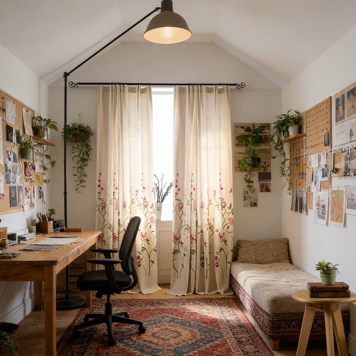 It fits seamlessly in country cottage kitchens, bohemian living rooms, or serene bedroom nooks. Whether you’re softening a bright entryway or adding warmth to a reading corner, these curtains wrap your space in the timeless, gentle beauty of a blooming garden—no green thumb required.